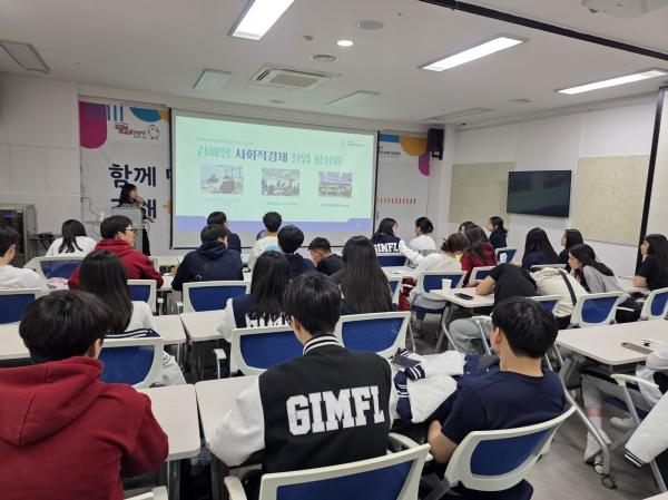 김해외국어고등학교 학생 대상으로 사회적경제 교육과 김해시사회적경제지원센터 소개를 했습니다.