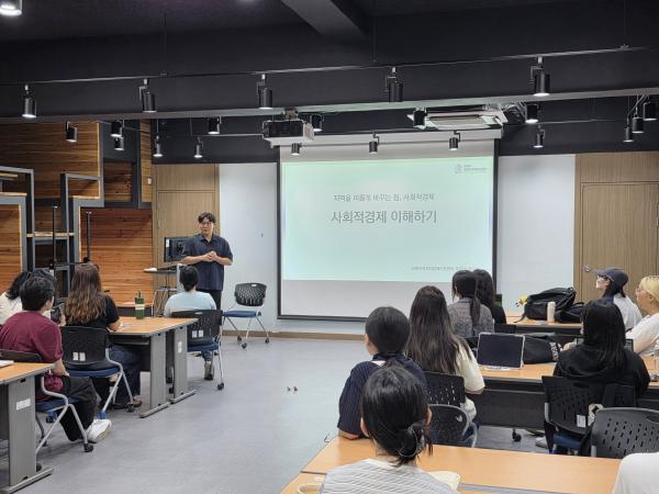 센터는 사회적경제 캡스톤 디자인 사업 설명과 사회적경제 이해 특강을 진행했습니다.