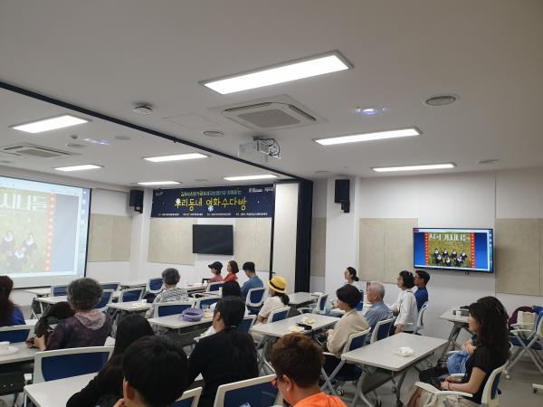 제 3회 김사공과 함께하는 우리동네영화수다방을 진행했습니다. 칠곡에 계신 할머니들의 좌충우돌 한글배우기와 마을공동체 관련 영화인 칠곡가시나들을 상영했습니다. 어릴 적 향수도 부르고 할머니들의 행복한 일상에 대한 이야기를 나누는 뜻깊은 시간이었습니다. 김사공과 함께하는 우리동네영화수다방은 매달 진행되니 7월달에 또 좋은 영화 관람 행사를 준비할 수 있도록 하겠습니다.