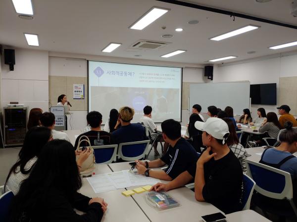 2019. 9.18(수) 김해시사회적공동체지원센터 내 대회의실에서 지방자치와 지역사회 캡스톤디자인 특강이 있었습니다. 대학의 사회혁신 교육과정의 하나로 진행되는 인재대학교의 '지방자치와 지역사회캡스톤 디자인수업'의 일환으로, 학생들에게 사회혁신, 사회적공동체의 가치와 비젼을 공유하고, 지역의 사회혁신, 사회적기업 등에 대한 이해를 돕는 뜻깊은 강의가 되었습니다.