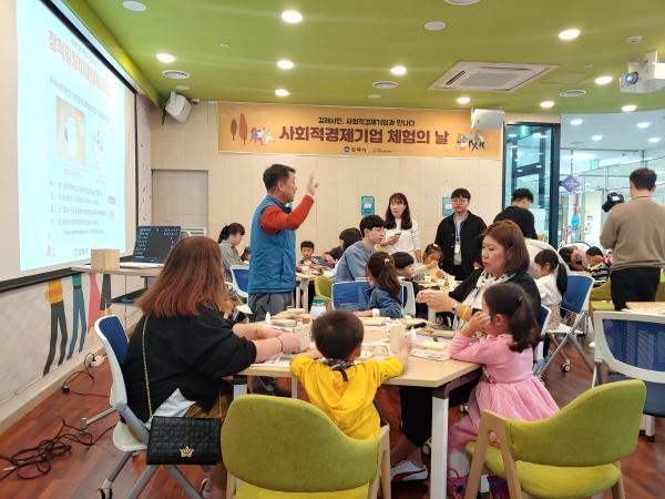 숲의 소중함과 그 속에 자라는 나무에 대한 이해를 넓히고자 교육과 목공체험프로그램을 진행하는 김해시 예비사회적기업 '장척힐링마을 영농조합법인'과 관내 지역아동센터가 연계하여 사회적경제기업 체험의 날을 진행하였습니다.