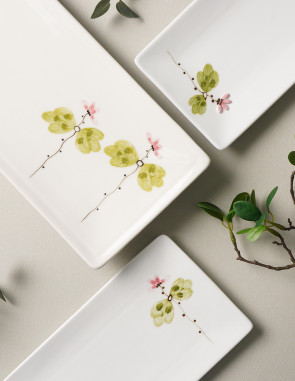 꽃무늬 포인트 생선 접시 다용도 접시 연꽃 긴 사각 접시 50,000원
