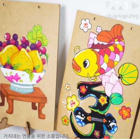 퓨전 귀여운 민화 도안 4종 책가도 효자도 소과도 모란도 그림 도안 색칠 놀이 키트 DIY