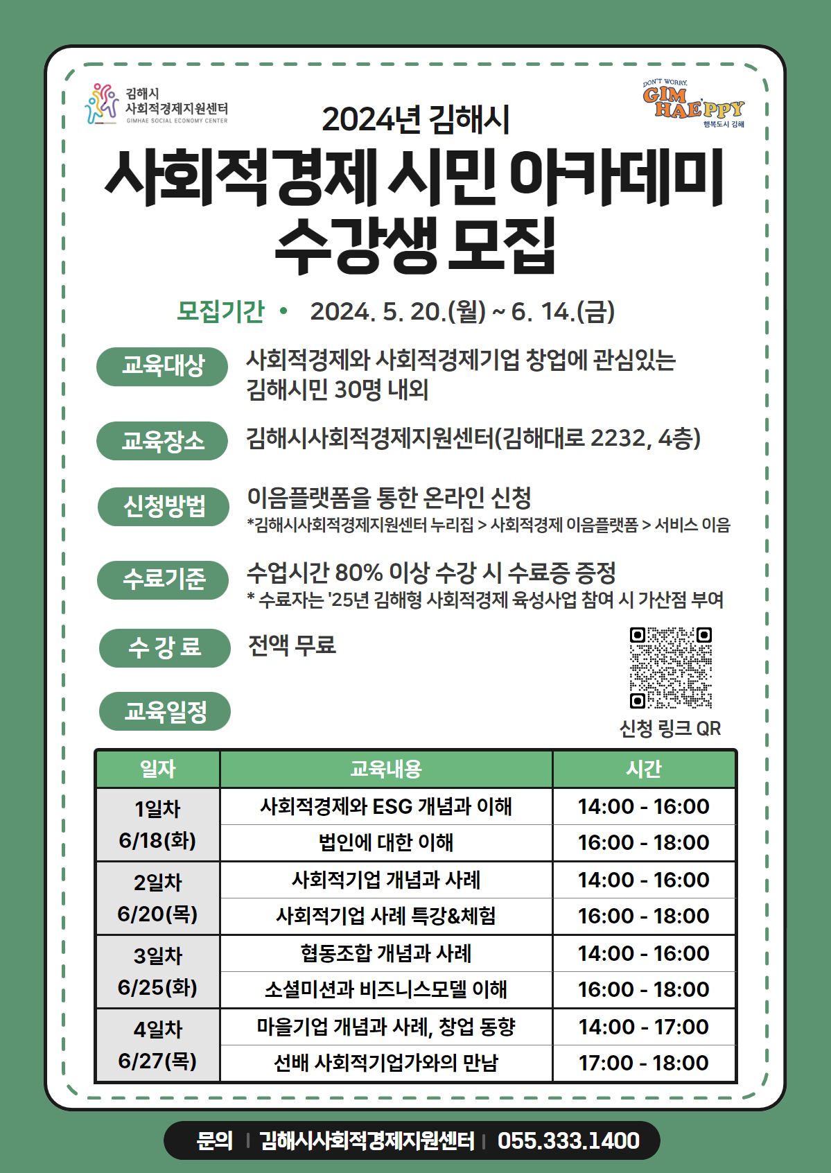 - 교육장소 : 김해시사회적경제지원센터(김해대로 2232, 4층)