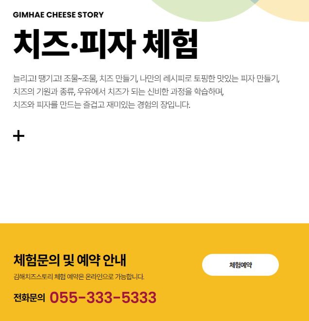 • 제품정보늘리고! 땡기고! 조물~조물, 치즈 만들기, 나만의 레시피로 토핑한 맛있는 피자 만들기, 치즈의 기원과 종류, 우유에서 치즈가 되는 신비한 과정을 학습하며, 치즈와 피자를 만드는 즐겁고 재미있는 경험의 장입니다.//홈페이지로 들어오셔서 예약 하시거나, 상단 문의처로 전화주세요