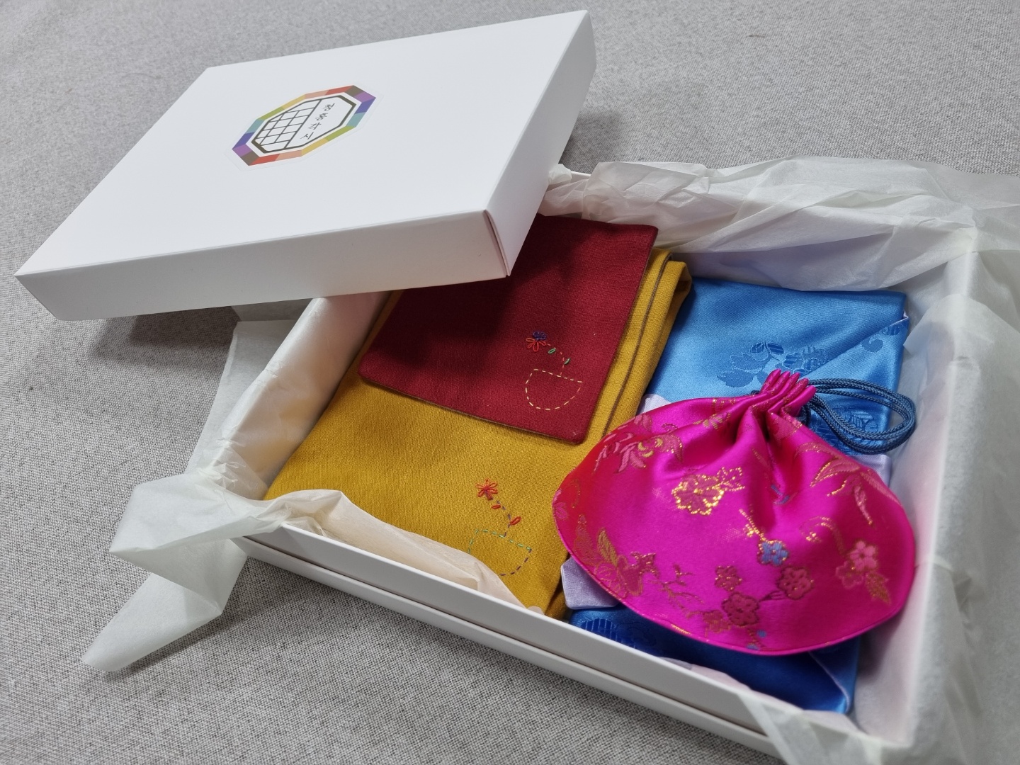 제품정보행운을 가득 담아 줄 복주머니와 예물 대신 용돈을 넣어서 주는 돈보(예단보), 티타임과 간단한 식사시간에 따뜻한 색감을 더해 줄 티매트 세트로 명절뿐만 아니라 소중한 분들에게 선물하기에도 좋은 제품들로 모았습니다. 크기는 티매트세트(면/티매트-36*29cm, 티코스트-10*10cm), 복주머니(물실크/15*13cm), 돈보(물실크/펼침32*32cm,접힘19*10cm) 3종 모두 색상 랜덤입니다. 가격은 할인된 가격으로 50,000원입니다.