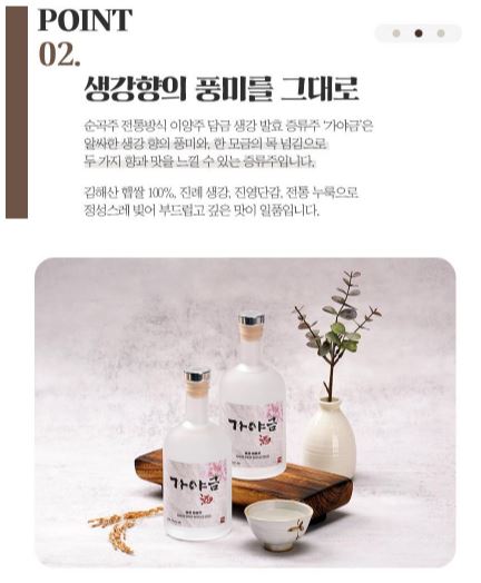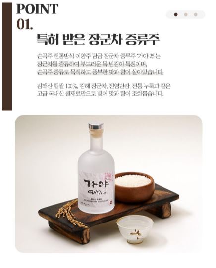 • 제품정보가야양조장은 정직한 술, 정성스러운 진짜 우리술을 만들고자 직접 재배한 자경쌀과 김해지역에서 생산되는 쌀로만 술을 빚습니다. 6차산업 인증으로 김해시 6차산업 협의회 농가소득증대와 함께 더불어 공존하기 위해 노력하고 있습니다.