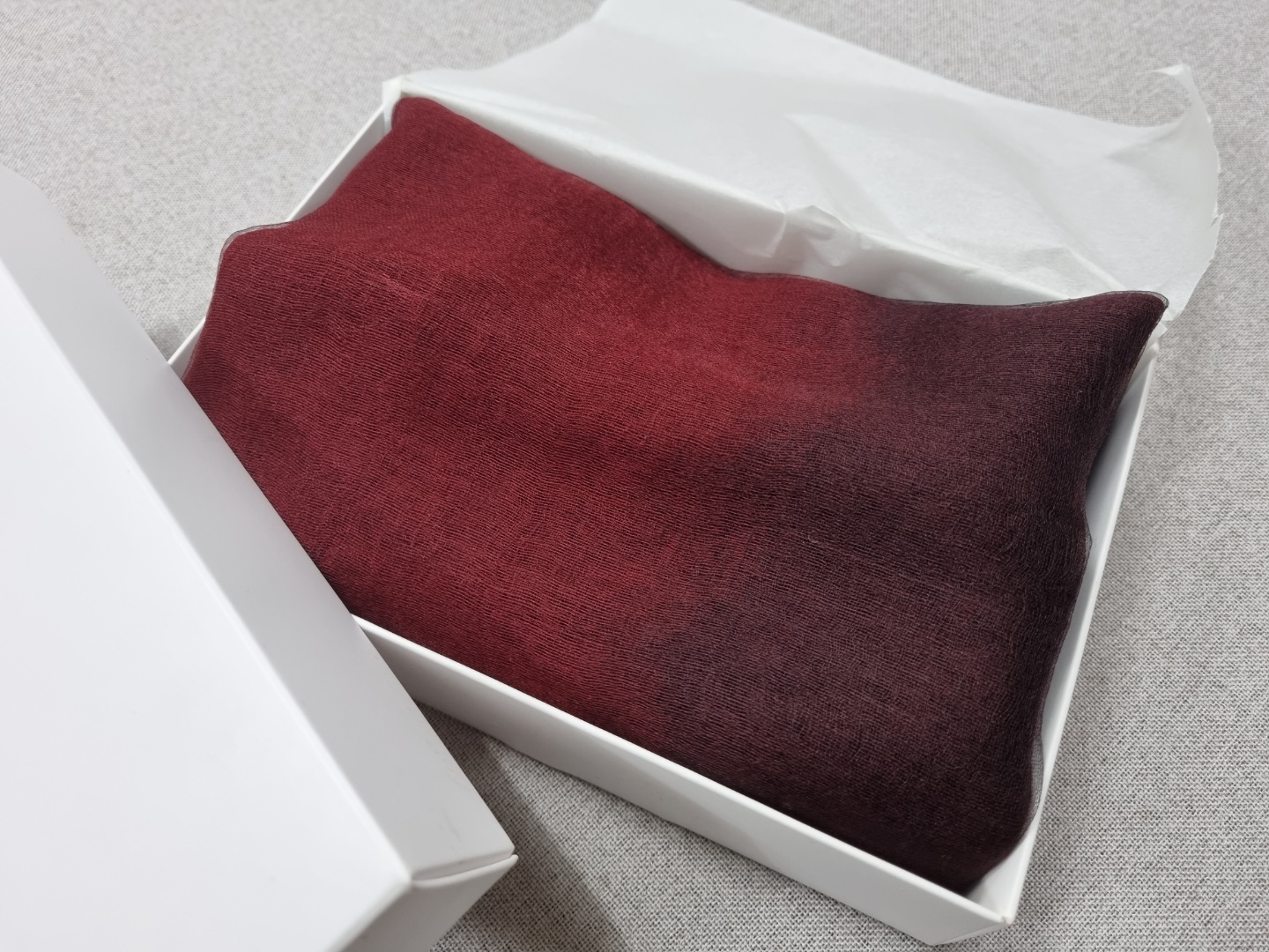 • 제품정보명주, 실크, 모직(에코염)으로 만든 스카프로 부드러운 감촉과 천연염색을 통해 자연스럽고 따뜻한 색감을 느낄 수 있습니다. 크기는 명주(195*55cm), 실크(175*55cm), 모직(에코염, 185*85cm)입니다. 가격은 할인된 가격으로 명주와 실크는 35,000원, 모직은 70,000원입니다.