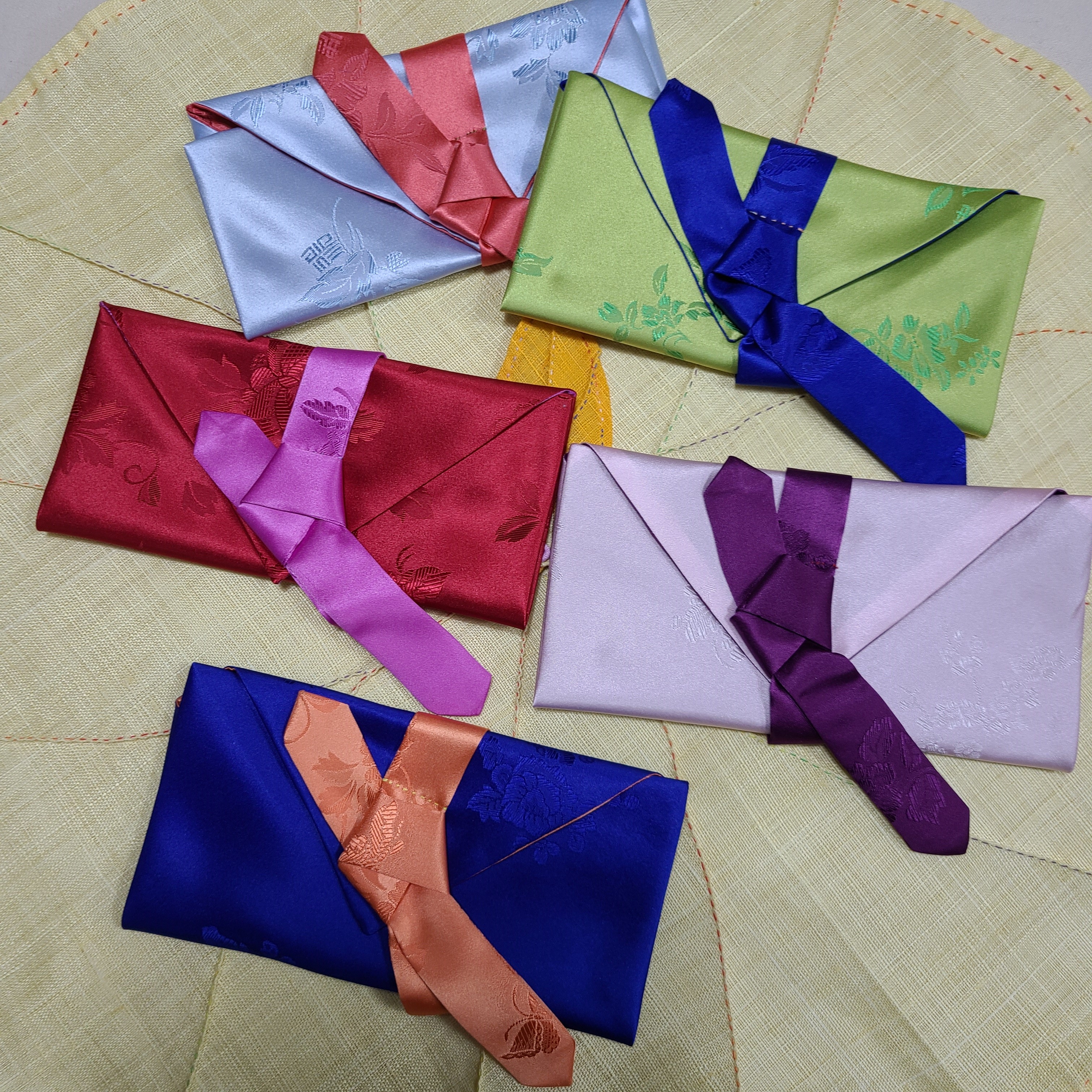 제품정보행운을 가득 담아 줄 복주머니와 예물 대신 용돈을 넣어서 주는 돈보(예단보), 티타임과 간단한 식사시간에 따뜻한 색감을 더해 줄 티매트 세트로 명절뿐만 아니라 소중한 분들에게 선물하기에도 좋은 제품들로 모았습니다. 크기는 티매트세트(면/티매트-36*29cm, 티코스트-10*10cm), 복주머니(물실크/15*13cm), 돈보(물실크/펼침32*32cm,접힘19*10cm) 3종 모두 색상 랜덤입니다. 가격은 할인된 가격으로 50,000원입니다.