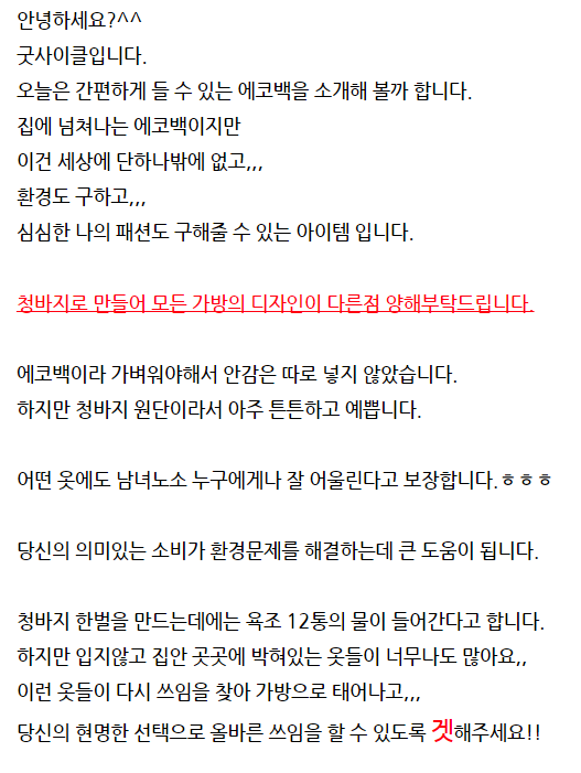 청바지 에코백 업사이클 가방 제로웨이스트 25,000원