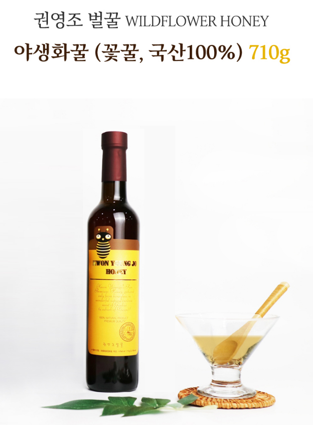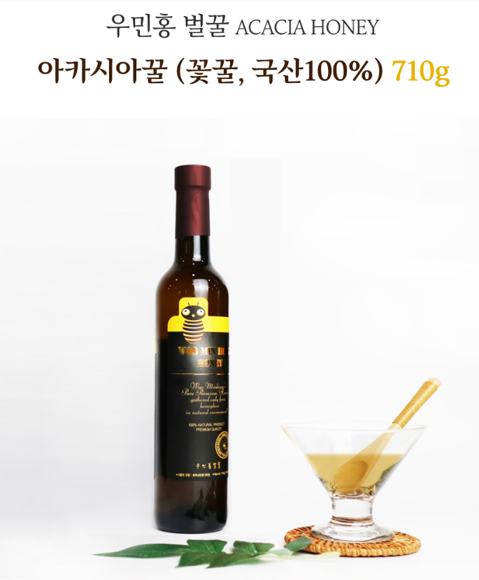 • 제품정보우민홍 벌꿀(아카시아벌꿀) 710g 권영조 벌꿀(야생화벌꿀) 710g 천번의 날개잣으로 수분이 증발된 100% 천연 숙성꿀
