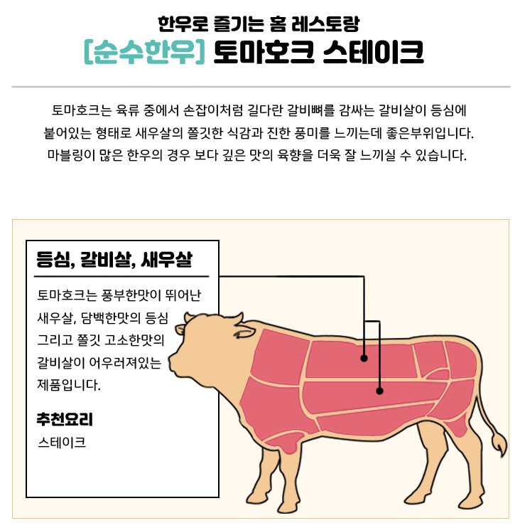 [순수한우] 1등급 토마호크 스테이크 500g이상 [스킨포장/냉장] 판매가 39,500원 => 할인판매가 37,525원