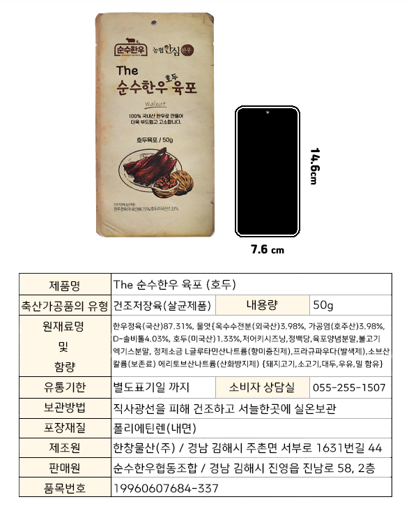 [순수한우] The 순수한 호두육포 50g 판매가 8,900원 => 할인판매가 8,455원