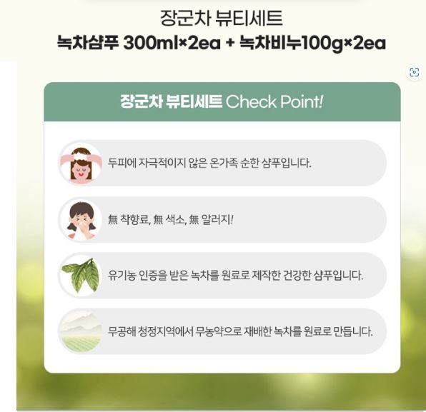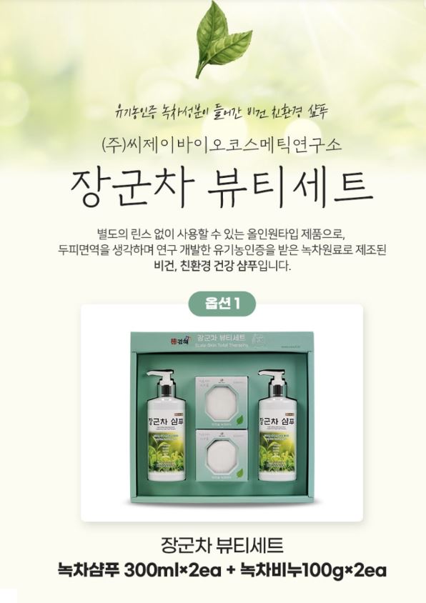 리쏠 장군차뷰티세트 녹차샴푸300ml 2 + 녹차비누 100g 2 비누망증정 /27,000원